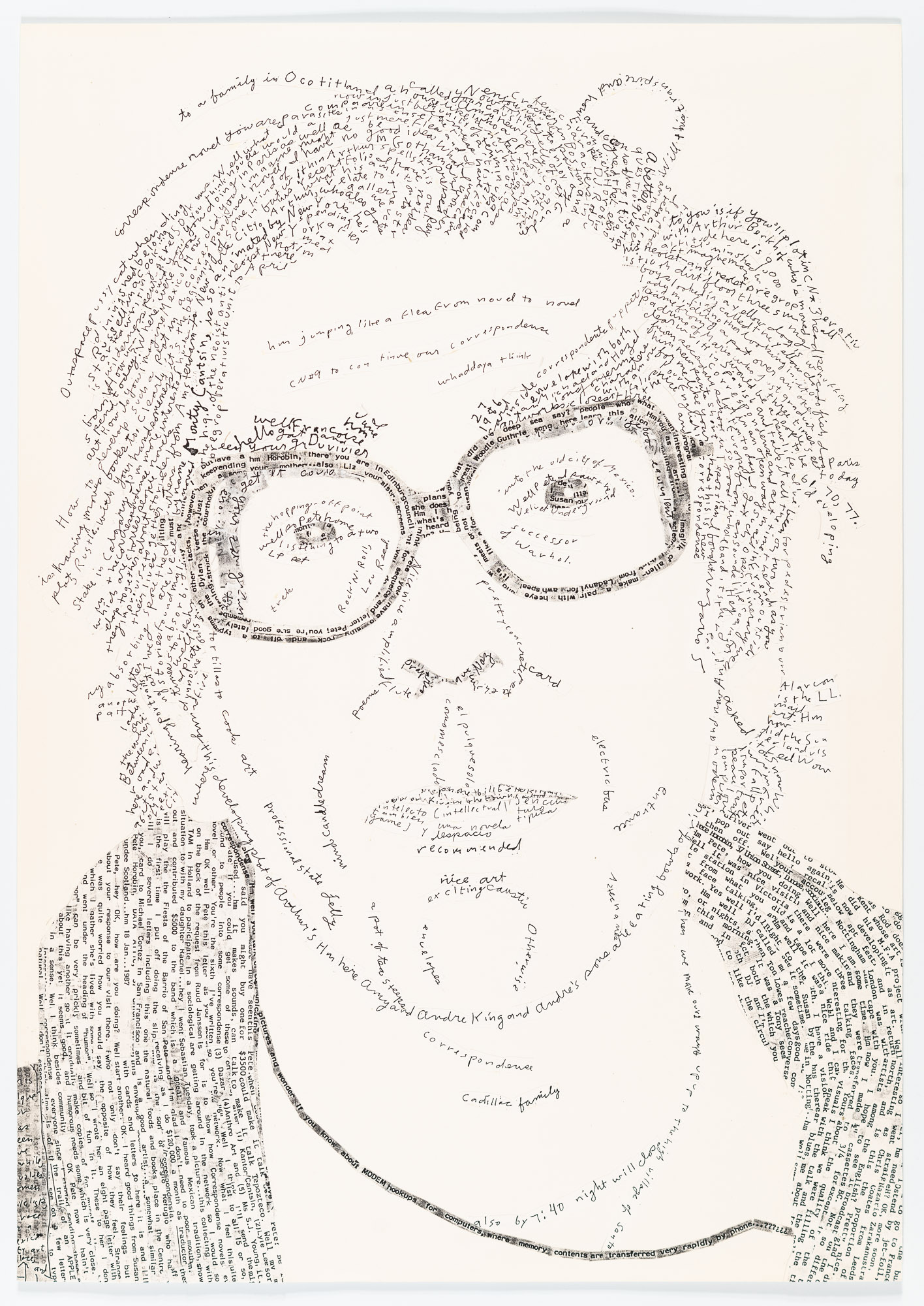 "The 1st correspondence portraits were published as postcards – the larger format followed using cut-up letters from the person portrayed – zack’s portrait is made using his letters to pete horobin cut-up" by e-mail, haha, 14.04.2026