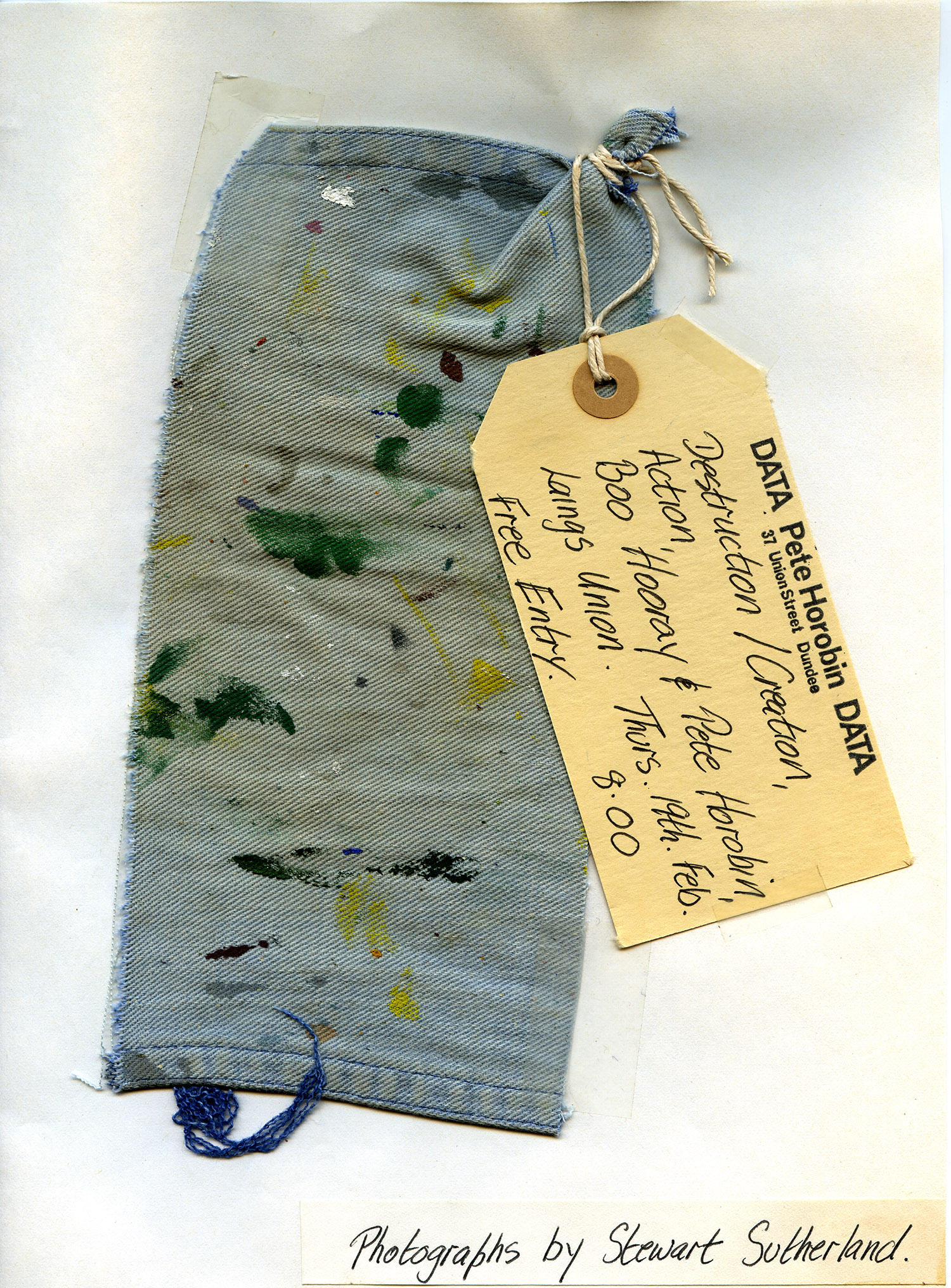 Destruction / Creation, Action, Boo Hooray & Pete Horobin, Laings Union, Thurs. 19th February 1981, 19.00 pm free entry, photographs by Stewart Sutherland
